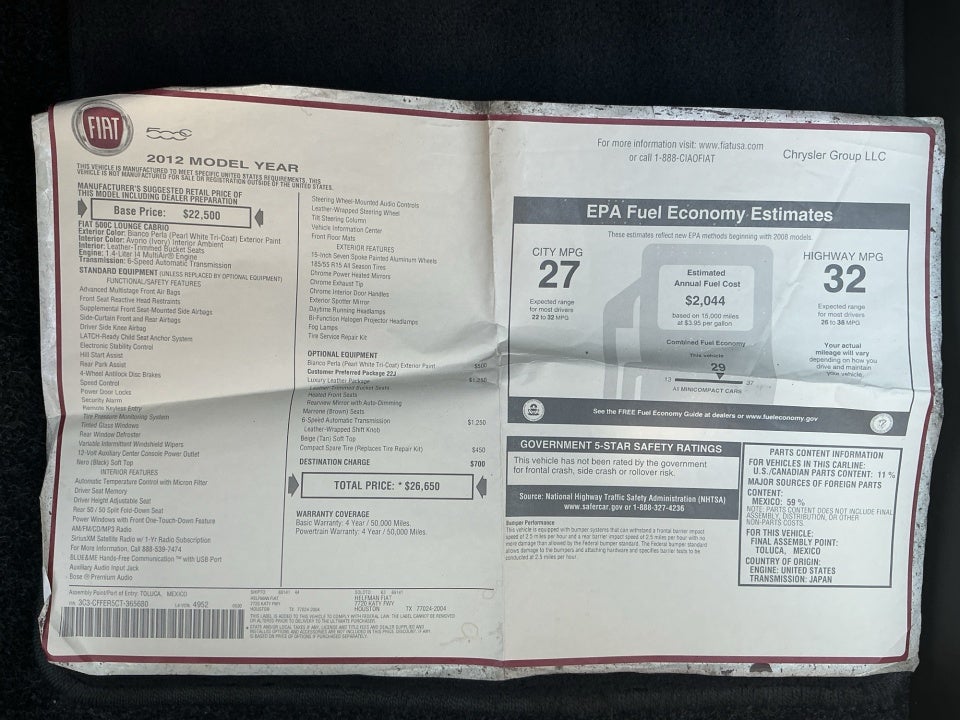 - Vehicle Name: FIAT 500