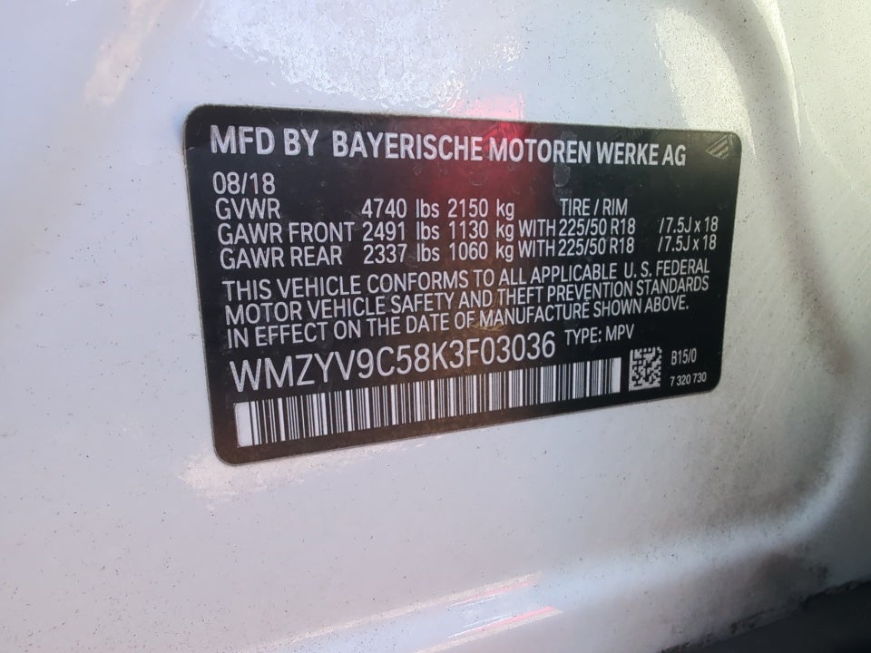 - Front Tire Size: P225/50WR18