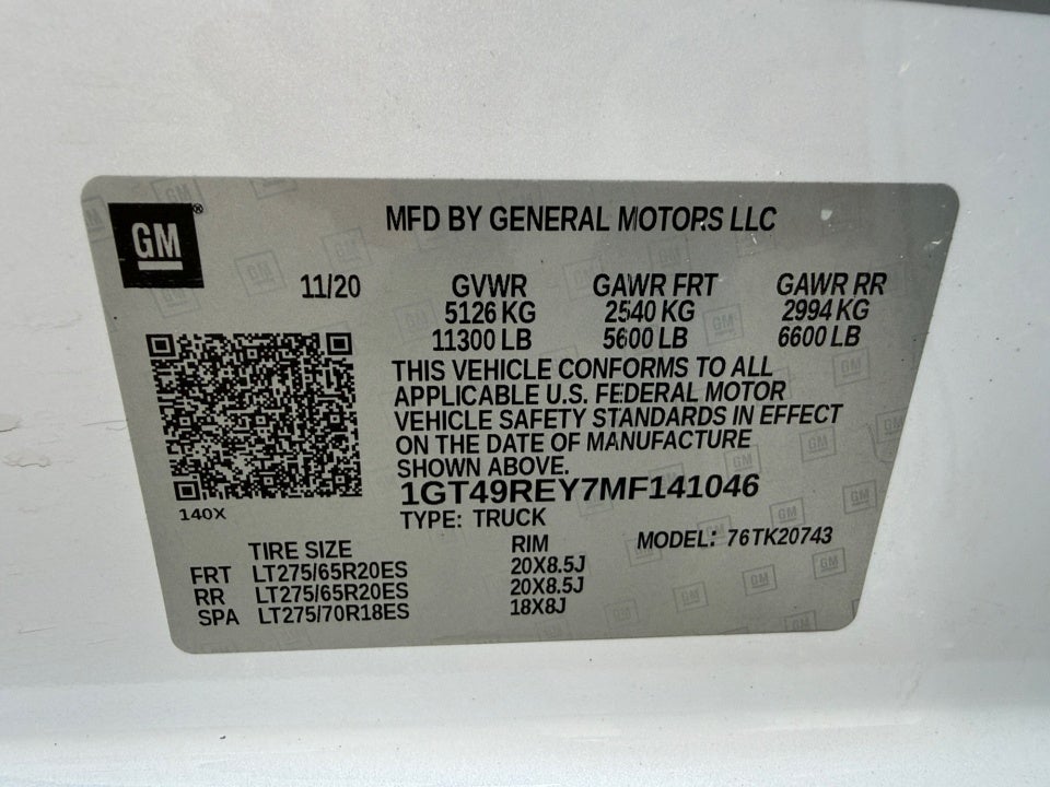 - Front Tire Size: LT275/65R20