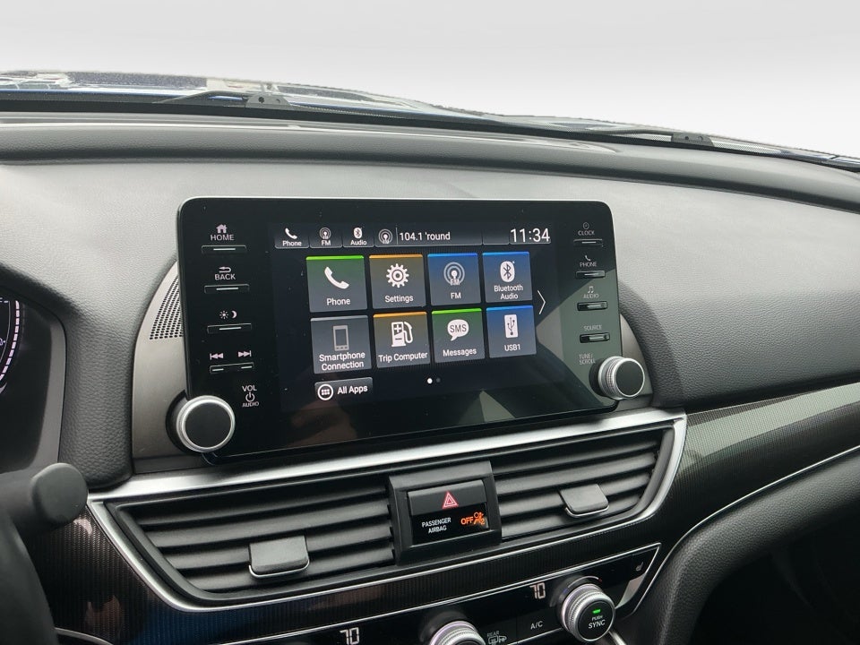 • Radio: 180-Watt AM/FM Audio System -inc: 8 speakers, 8" display audio w/high-resolution electrostatic touch-screen, knobs and hard keys for primary controls and customizable feature settings, Bluetooth® HandsFreeLink, Bluetooth® streaming audio, SMS text message function, Radio Data System (RDS), Speed-Sensitive Volume Compensation (SVC), HondaLink, Apple CarPlay integration, Android Auto integration, 2 2.5-amp USB smartphone/audio interface ports in front console, 2 2nd-row 2.5-amp USB charging ports, illuminated steering wheel-mounted controls and gloss black fin-type roof-mounted antenna