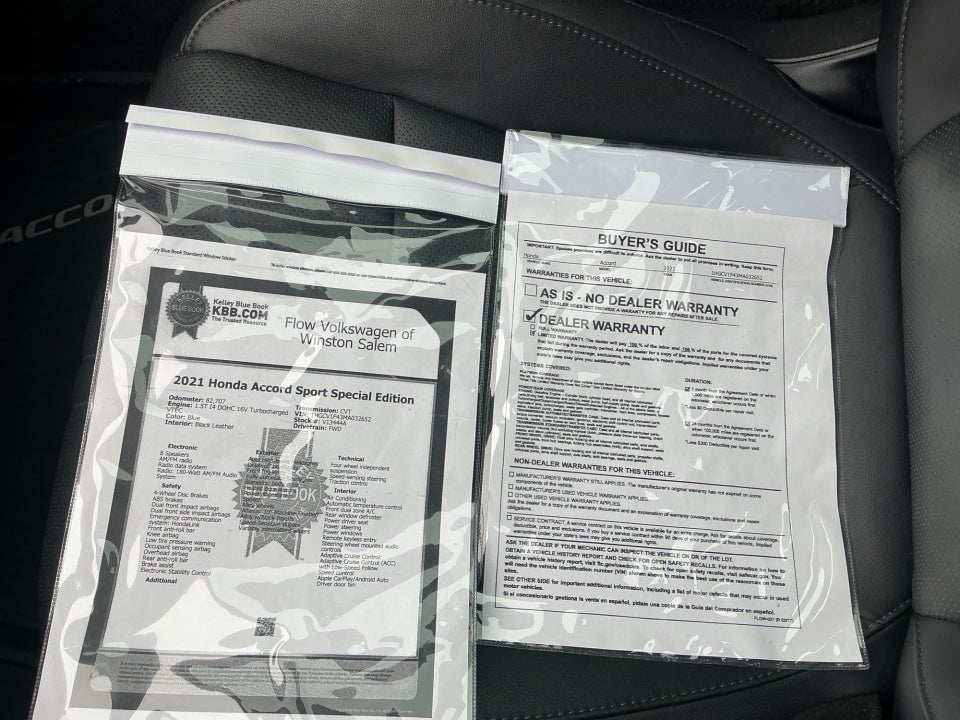 FLOW CERTIFIED! 2YR/100 000 MILE WARRANTY 3 day money back guarantee and a free maintenance package on this 2021 Honda Accord Blue Sport Special Edition! **