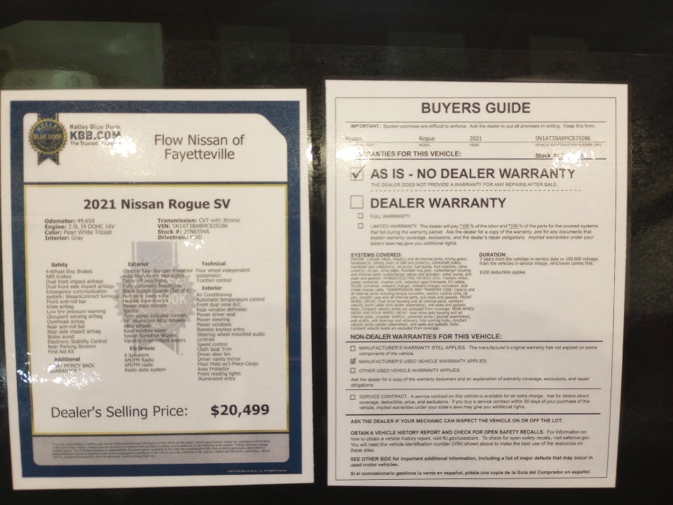 All of our Pre-Owned vehicles go through a QRP(Quality Renewal Process). Our customers tell us that we have the most professional trustworthy & courteous staff they've ever experienced at a car dealership. Please come check out Flow Nissan of Fayetteville's Easy Transparent Fun No Haggle No Pressure shopping experience. Don't hesitate to contact us at www.flownissanfayetteville.com or simply by calling 910-323-4400 to set up your VIP test drive. Thank you for allowing us to serve your automotive needs over the past 50+ years.