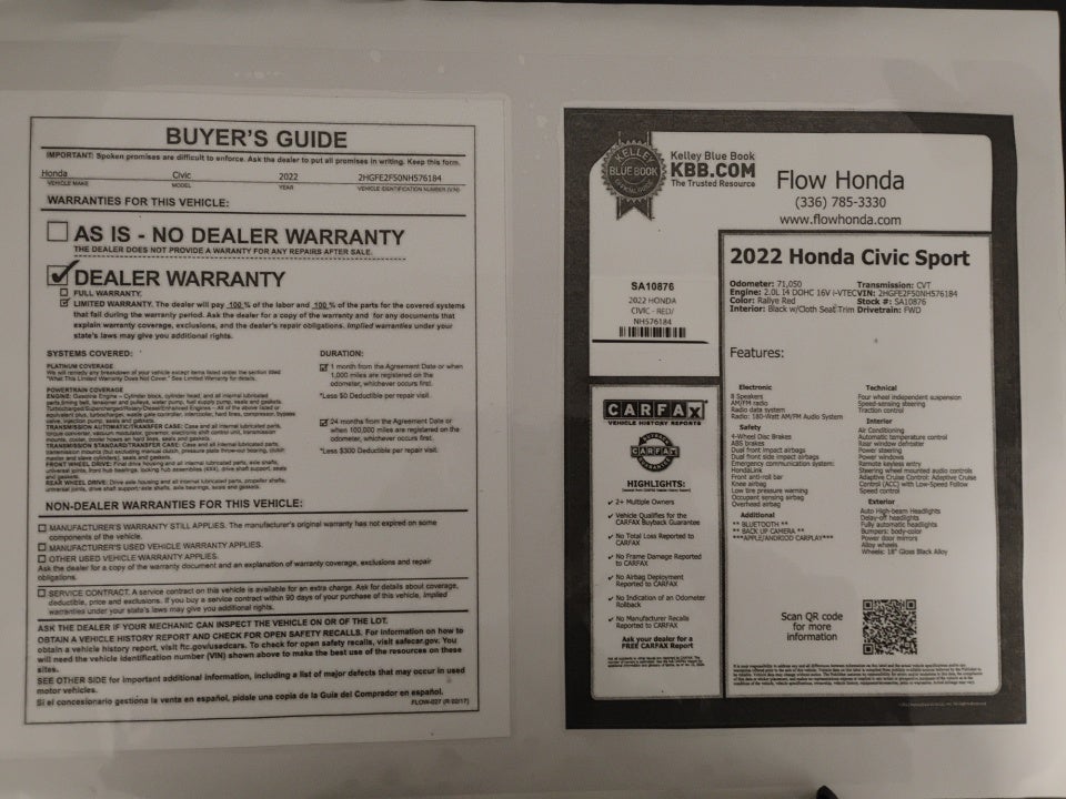 FLOW CERTIFIED! 2YR/100 000 MILE WARRANTY with $300 deductible and a free maintenance package on this 2022 Honda CivicRallye Red Sport! **
