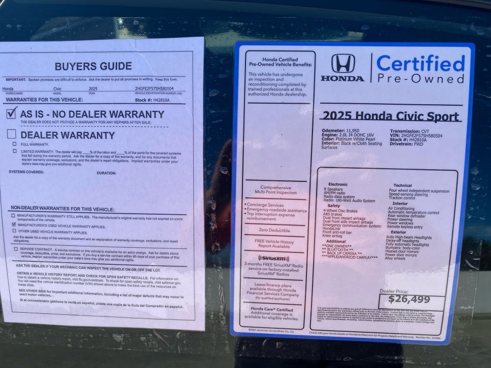 2025 Honda Civic Sedan Sport